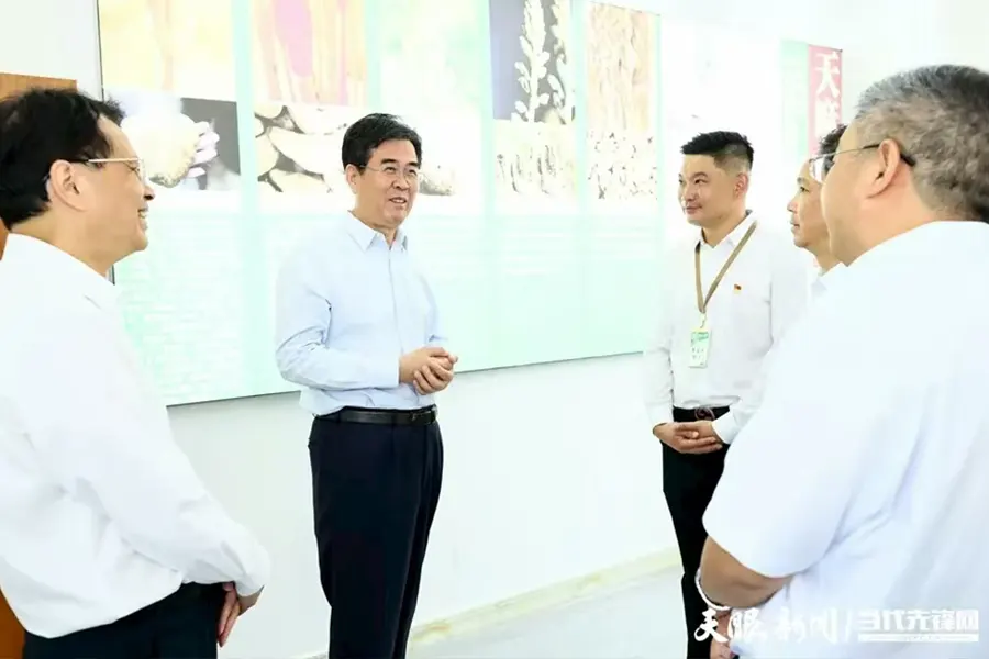 贵州省委副书记、省长李炳军莅临集团菌棒厂调研指导。陪同领导:贵州省委常委、毕节市委书记郭锡文,省领导石化清,省农业农村厅厅长张集智,赫章县委书记胡书龙,集团董事长李云汇报赫章县天麻产业发展情况。